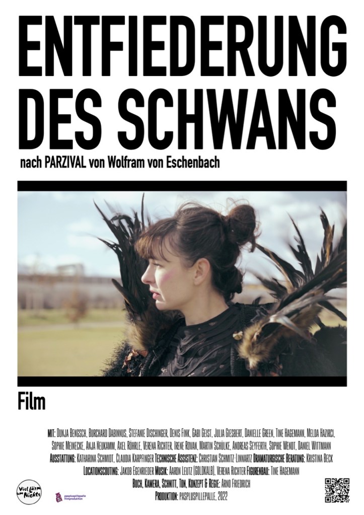 Im Parzival-Filmprojekt „Entfiederung des Schwans“ geht das Ensemble auf eine assoziative Suche nach gegenwärtigen Anknüpfungen von Eschenbachs Roman im nachbarschaftlichen Umfeld des Theaters. Was als Auskundschaftung verschiedener klein- und großstädtischer Außen- und Innenansichten beginnt, endet im Untergrund, im verborgenen Kraftwerk. Gesucht wird nicht der Gral, sondern eine postheroische Auseinandersetzung mit Parzivals Konflikten im städtischen Alltagsleben. Poetische Verbindung von Schauspiel, bildender Kunst und Musik. Miniaturensammlung, angesiedelt an bekannten und unbekannten Orten in München-Pasing. Große Fragen treffen auf Banalitäten und absurde Bilder des Alltags.